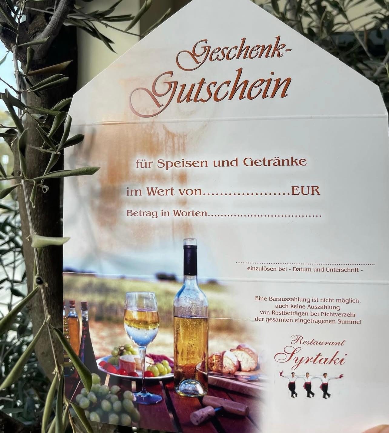 Unsere Geschenkgutscheine erhalten Sie in unserem Restaurant im Wert ihrer Wahl